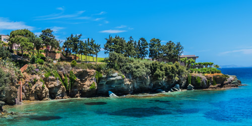 In one of the most beautiful bays on Crete, the all-inclusive Blue Bay Resort Hotel is perfect for families and couples seeking relaxation amid breathtaking scenery. Start lazy days with a dip in one of the four pools or stretch out on a sun lounger with a cool drink while admiring the view of the dazzling blue sea. No holiday to Crete is complete without an indulgent visit to the spa but be sure to carve out time to visit the nearby former traditional village of Agia Pelagia with its ancient ruins and tranquil vibe.
