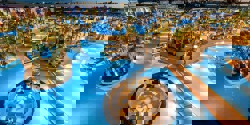 Navigate the island-like property by walking over the narrow bridges that criss-cross over the pool and make your way to your elegant abode. A collection of 225 accommodation options await, including the likes of overwater bungalows with Jacuzzis, and villas with private pools and luxury swim-up rooms. As beautiful and well-equipped as each room at Stella Island is, the resort has plenty more to indulge on. Food and wine are a match made in heaven at the on-site restaurants, bringing the brilliance of Cretan cuisine, Asian fare, grilled delights and more to the table. Enjoy cocktails and light bites at the Cabana Bar or a peaceful afternoon drink at Utopia, the all-day lounge. If you really don’t want to leave your room – they really are beautiful – then certainly make use of the in-room dining menu that comprises a wide selection of international flavours and handcrafted cocktails. Experience serenity at the spa with a treatment or two or stay fit during your stay with a visit to the gym which offers the likes of personal training sessions, yoga and Pilates. If you prefer to enjoy fresh air with your heart-pumping activities, there are plenty of sporting options including aqua aerobics, tennis, beach volleyball and football.
