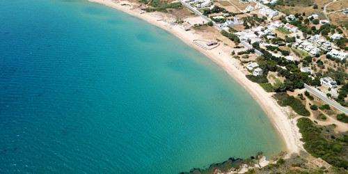 A lovely long curve of golden sand in the largely untouched northeast of the island above Gavrio that rarely gets busy.