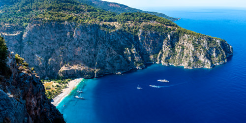 Butterfly Valley is a nature reserve in Feithyie and is the of the most delightful bays in the whole of Turkey. It is located on the western coast of the Gulf of Belceiz and is only accessible by boat. Its name comes from the beautiful Tiger Butterfly’s that can be seen here in early June till late October. But almost all the other species of butterflies that are found on this coastline can be seen in Butterfly Valley.