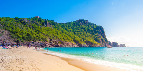 This immaculately clean beach is bordered by a lovely boardwalk and all the stores, cafés, and restaurants you'll need to spend an entire day on the beach. With over two million tourists every year (not to mention the daily boat cruises), there are plenty of facilities. Cleopatra Beach's waters are warm and inviting for swimming and water sports, such as surfing and paragliding, are popular activities here.