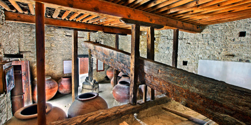 A 150-year-old stone building in the village of Erimi, a few miles west of Limassol, was once an inn that stood on the cross-roads of the Cyprus wine routes. It is now the Cyprus Wine Museum. The exhibits tell the history and culture of wine making on the island and include a traditional wine press, grape grinder, other tools, glassware, photographs and historic clothing.