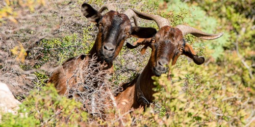 The mainly black, short-haired Karystos has more angled horns, and in the mountainous Fokida area of the mainland a large breed with long, thin, horns is known as Barbatsiki, or bearded, for obvious reasons.