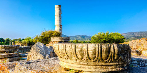 The temple and sanctuary to Hera, the goddess of women, is a world heritage site. Mythology says Hera was born and raised on Samos and the first temple to her was built there more than 3,000 years ago.  A giant statue of a naked man was found there.