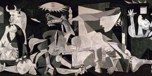 Picasso had endless ways of depicting the terrible, tortured beast, in paintings, etchings, ceramics, sculpture, engravings and tapestries, even arranging a bicycle seat to depict a bull’s head with the handlebars for horns.