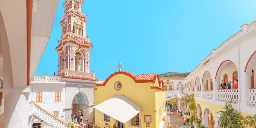 Winding up the hillside is the beautiful village of Chorio (which directly translates to village in Greek), located just above the harbour. Don’t let the 450 or so steps from the quayside put you off – if you can make the trip, do it as it is well worth the effort. The village offers a step back in time, retaining a feel of traditional laidback Greece abundant with narrow cobblestoned passageways, ancient ruins and cafés where locals sip coffee al fresco over a chilled game of cards. The view from the top of the village is spectacular, and after the sweat-inducing ascend, take a moment to soak in the vistas before rejuvenating at a nearby bar or taverna. Wander around the ruins of the ancient acropolis and castle, a fortress that was destroyed by the Italians upon leaving the island in World War II. You can even stop off at the museum or admire the once-working windmills but once you’ve had your culture fix, descend down the hill and reflect on a glorious day in the village of Chorio. Pedi is also a must during your holiday to Symi. A small community on the eastern side of the island, this area is full of orchards, delightful gardens, fig trees and the iconic Greek olive tree. Thanks to the verdant vegetation and the wild oregano and dill plants, a delicate perfume fills the air while Pedi is also home to some of the best walking terrains as well as one of the most beautiful beaches on the island, perfect for the ultimate relaxation under the Grecian sun. Oh, and don’t leave Symi without visiting a few of the monasteries, including Taxiarchis Mikhail Roukountis which is the island’s oldest monastery, Aylos Emilianos monastery and Kokkimidhis monastery which is located on a hilltop and home to the finest frescoes in the area.