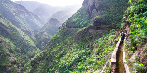 An old aqueduct now used as an adventure hiking trail in the Anaga Mountains, Tenerife.