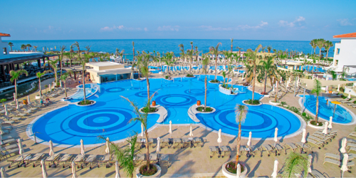 Almost directly opposite sits the impressive 5* All Inclusive Olympic Lagoon Resort. The hotel is very large but never feels busy due to the amount of space both inside and out, and there’s an excellent choice of dining options with six different restaurants. Very popular for weddings here too! We were treated to lunch in the main buffet restaurant and then a short walk back to the Athena Beach where we had a couple of hours to enjoy the pool and beach before getting ready to meet early evening at the 5* adults only Constantinou Bros Asimina Suites Hotel.