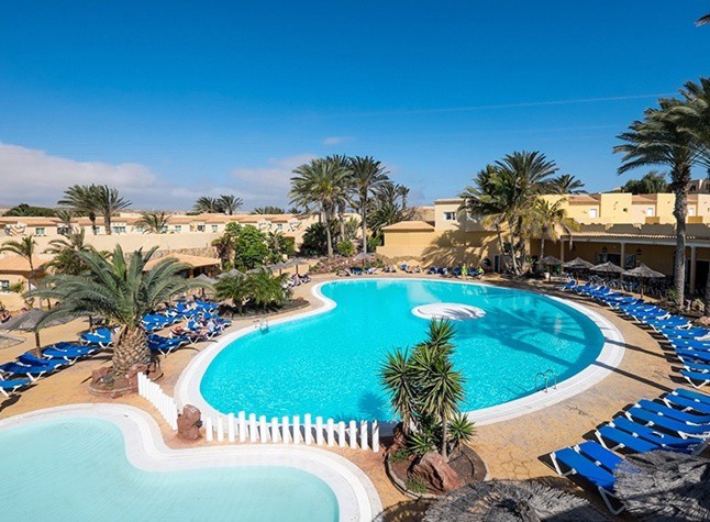 The All-Inclusive Royal Suite Hotel is situated in a quiet area of Costa Calma in the south of Fuerteventura, just a short walk from some of the best beaches in all Canary Islands. Featuring a relaxed atmosphere surrounded by lush green gardens, this attractive 3 Star property makes an ideal base for couples and families seeking to get away from it all with 166 comfortable guestrooms well equipped with modern amenities and close to a host of activities. The town is within 900 metres of the complex with a wide selection of bars, restaurants, cafes, shops and banks. Fuerteventura Airport is 70 kms from the Hotel Royal Suite.