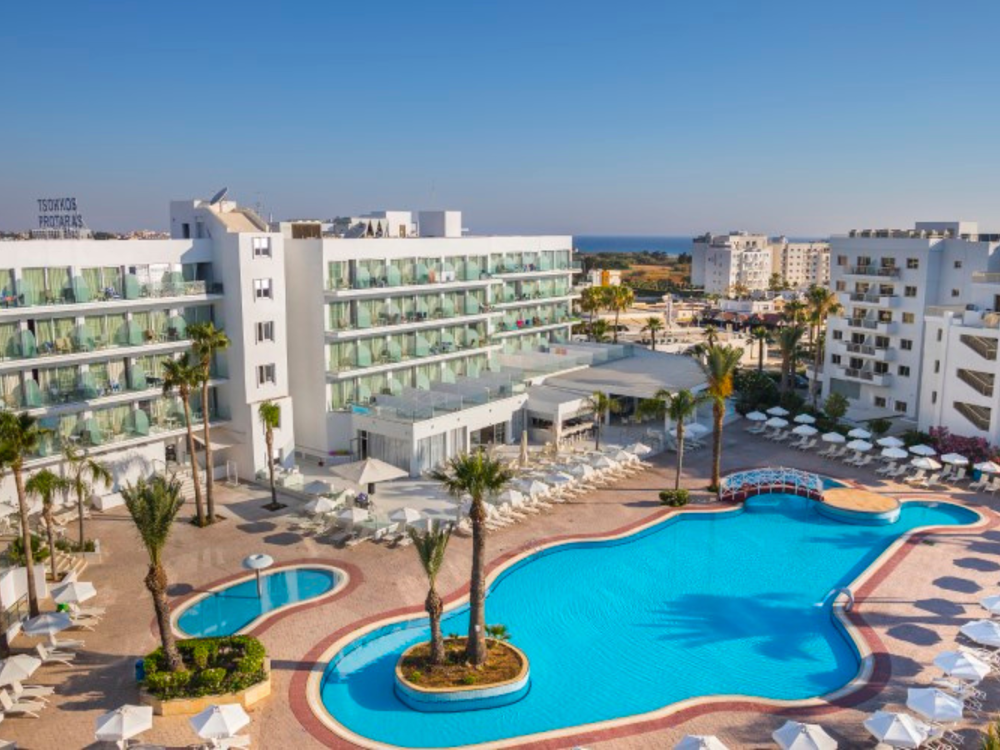 The Tsokkos Protaras Beach Hotel is superbly located in the heart of the Protaras, in a quiet area of the resort, within walking distance of the beautiful golden sandy beach at Protaras Bay. This hotel offers a warm and friendly atmosphere along with a wide array of facilities and well appointed, spacious rooms for those looking for a Greek island holiday. Laze around the pool under the gorgeous Mediterranean sun or head to the beach on your Tsokkos Protaras Beach Hotel holiday.