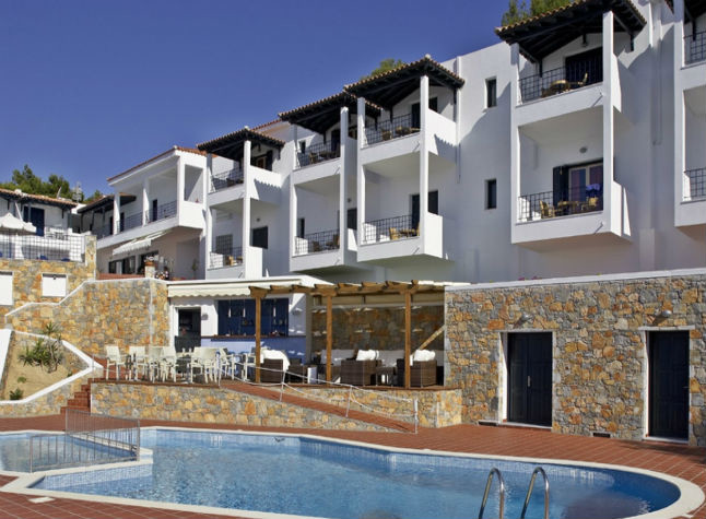 The Atrium of Alonissos is perched on the hill just outside the main port village of Patitiri. The hotel offers you an extraordinary view overlooking the beach hamlet of Rsourm Yialos and out to the National Marine Park. The old traditional town of Alonissos is situated approximately 1.5 kms from the hotel. The hotel was built with the aim of providing a high standard of comfort and relaxation to meet the requirements of the most demanding holiday maker.