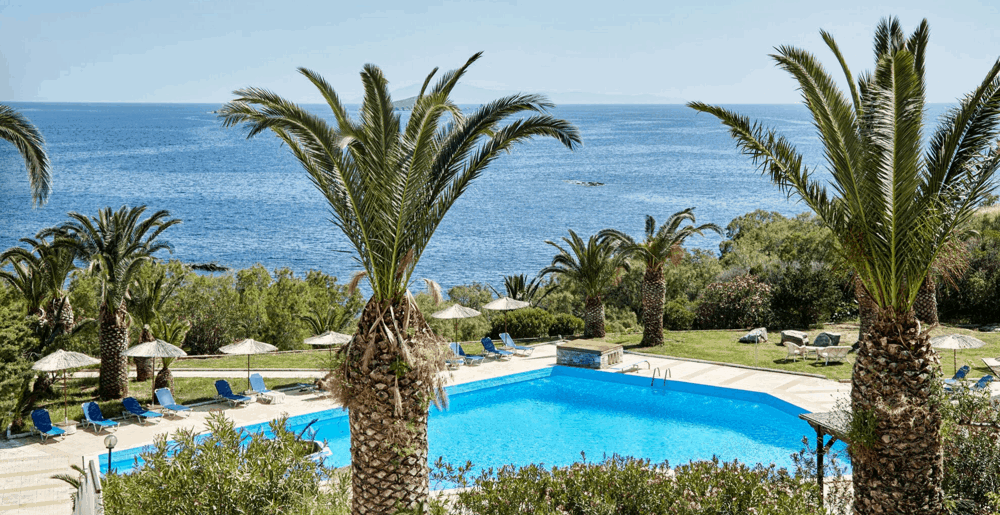 Andros Holiday Hotel is located only 500 m. from the port of Andros, Gavrio, in an idyllic location with panoramic view to Aegean and its own private beach.
