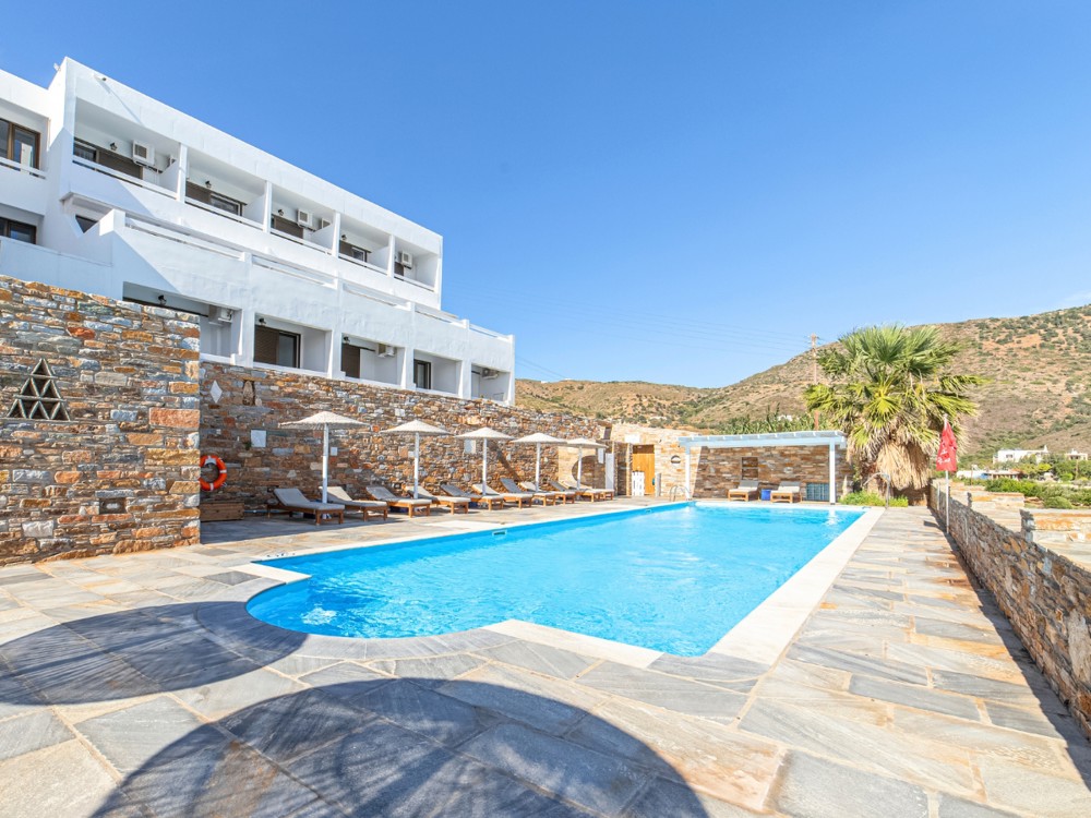 The hotel features 44 thoughtfully designed rooms, most with stunning sea views, combining comfort and simplicity for a truly restful stay. Here, accommodation comes with authentic Greek hospitality, warm service, and careful attention to detail. Whether you are soaking up the sun at the beach club or enjoying a refreshing drink by the pool bar, every moment is made to feel special.