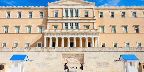 The Tomb of the Unknown Soldier, in front of the Parliament, is protected by members of the elite Parliamentary Guard called the Evzones.