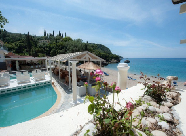 The  Blue Princess Beach Resort is situated next to the traditional Liapades village , in an idyllic peaceful, beachfront  location on the west coast of Corfu. The Resort  consists of three sections built amphitheatrically on the slopes of a green  hill, amidst gardens, olive groves and wild vegetation. The Resort offers three swimming pools, 4 Bars, 3 children's pools, 24 hrs Reception and 3 Restaurants.