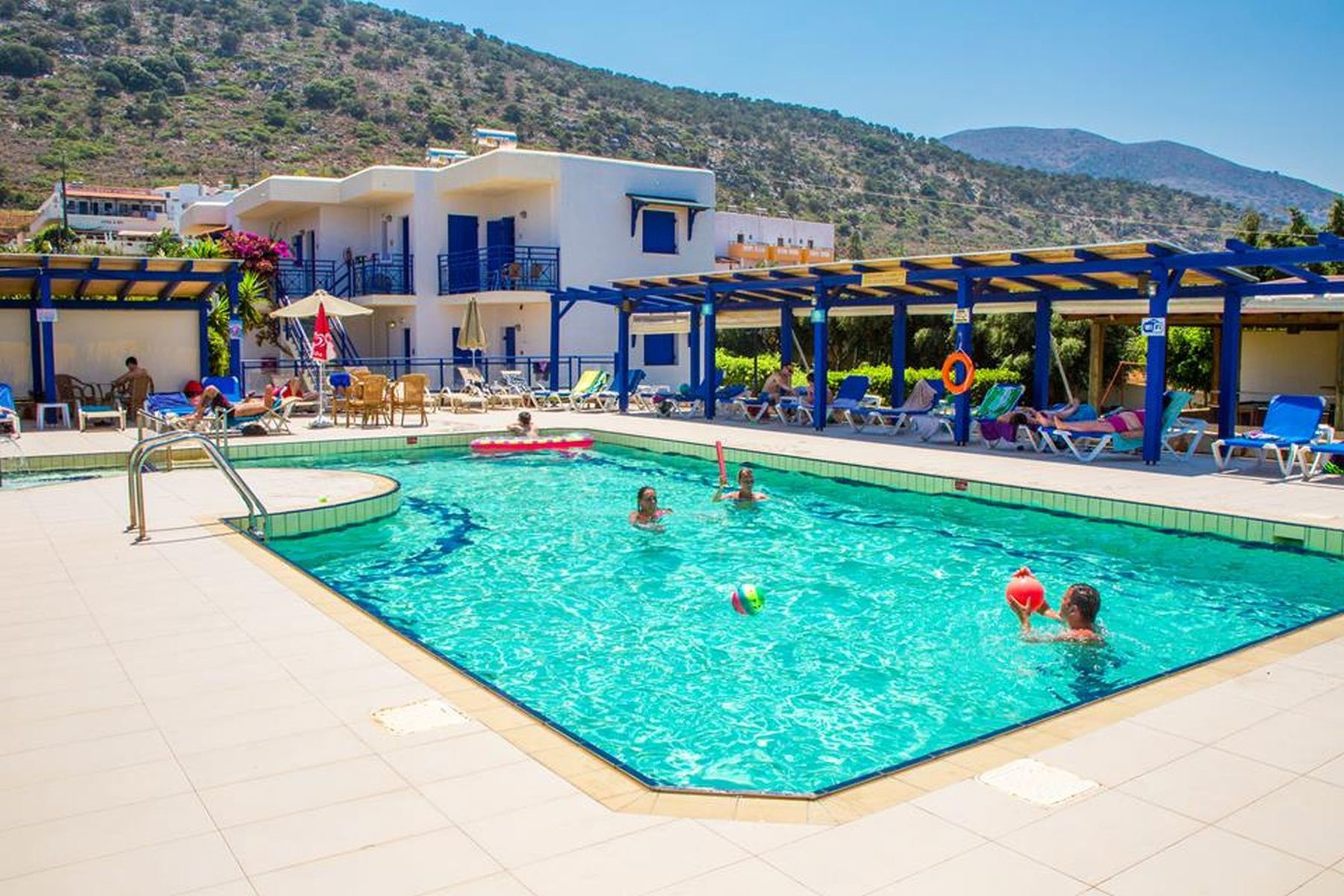 Standard Apartments sleep up to 4 persons with double bed, 2 extra beds, baby cot (for free), balcony or terrace, free WiFi, safety deposit box (local charge), kitchenette, mini fridge, kettle, SAT TV, individually adjustable air conditioning (local charge) hairdryer and Bathroom with shower. One bedroom Superior Apartments also available.