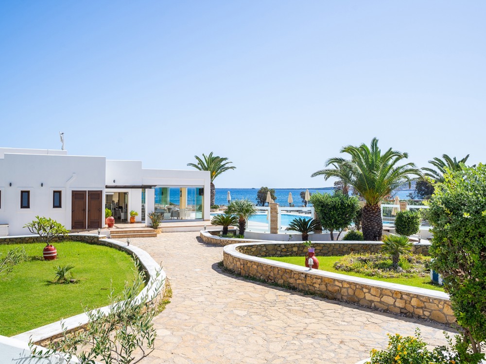 Standard Room Garden View (22m2) sleeps up to 3 persons featuring a double bed, extra bed or two single beds, fully equipped bathroom with shower, bath amenities, air conditioning, direct dial telephone, flat screen TV, hairdryer, iron and iron board, fridge, safety deposit box, slippers, veranda, free WiFi, beach towels (payable locally) and a private balcony. Standard Room Side Sea View or Sea View are also available on a supplement.