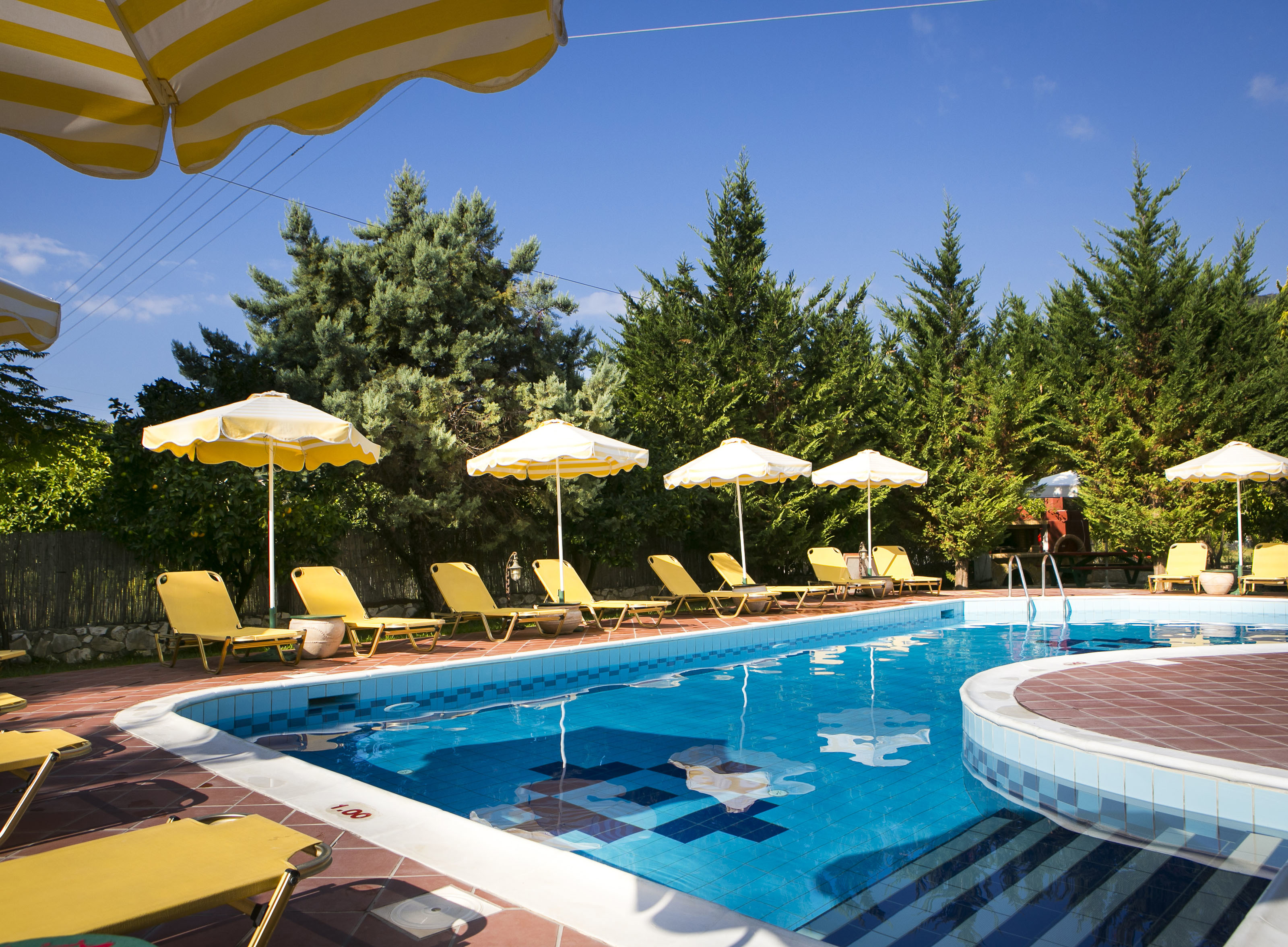 The Hara Apartments are a small, traditionally Greek complex set within a charming garden of orange trees, just outside the peaceful and picturesque fishing village of Katelios. The village centre and beautiful beach are just a 10 minute walk away. Simply follow the path from the accommodation to the main road, turn right, and walk to the roundabout. From there, go left and follow the road into the heart of Katelios, the beach is on your left, with tavernas and shops to explore.