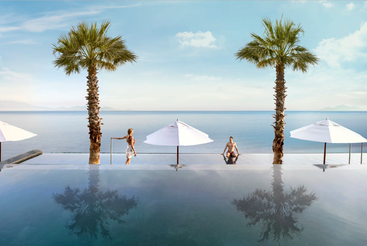 The sumptuously-appointed rooms have mountain or sea views, and family suites share a pool, while the Panorama Restaurant has cuisine-themed nights, and there are Italian and snack restaurants, too.