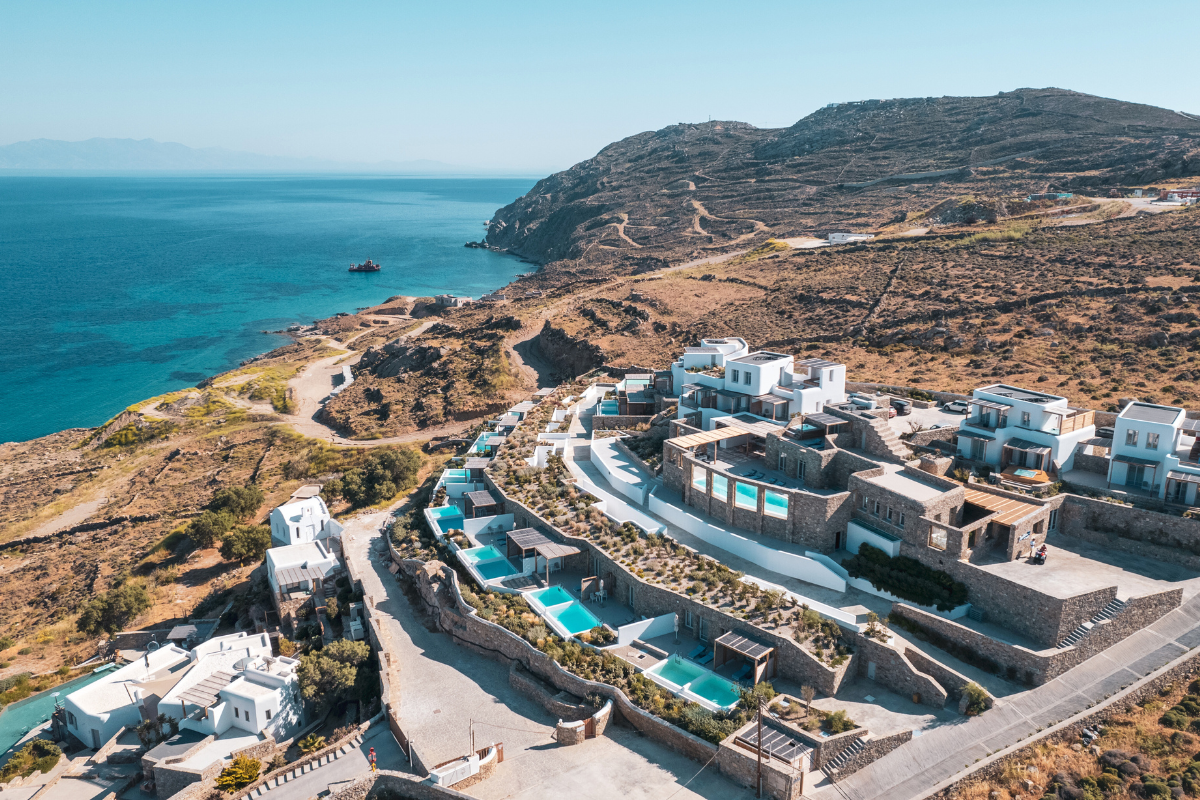 The resort's lavish rooms blend modern sophistication with Mykonian charm. Savour international and Mediterranean cuisines at the on-site restaurant, while poolside bars craft delightful cocktails.