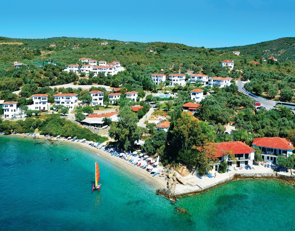 The Leda Village Resort stretches an area of 30,000m2, cascading down to a sheltered beach with an amphitheatre design set amongst olive trees and lush vegetation, with magnificent views of the Pagasetic Gulf. The guest rooms are hosted in buildings built in traditional Pelion style, decorated with folklore art paintings and stained-glass fanlights, oozing with character.