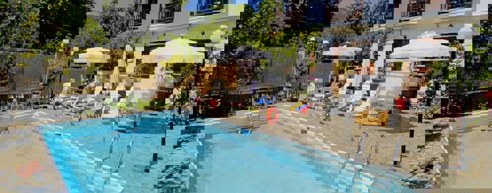 Charoula’s Studios is a charming and pleasant hotel with spacious rooms, decorative gardens and swimming pool with nearest shops and bars within a few steps and only a short distance to the nearest beach.