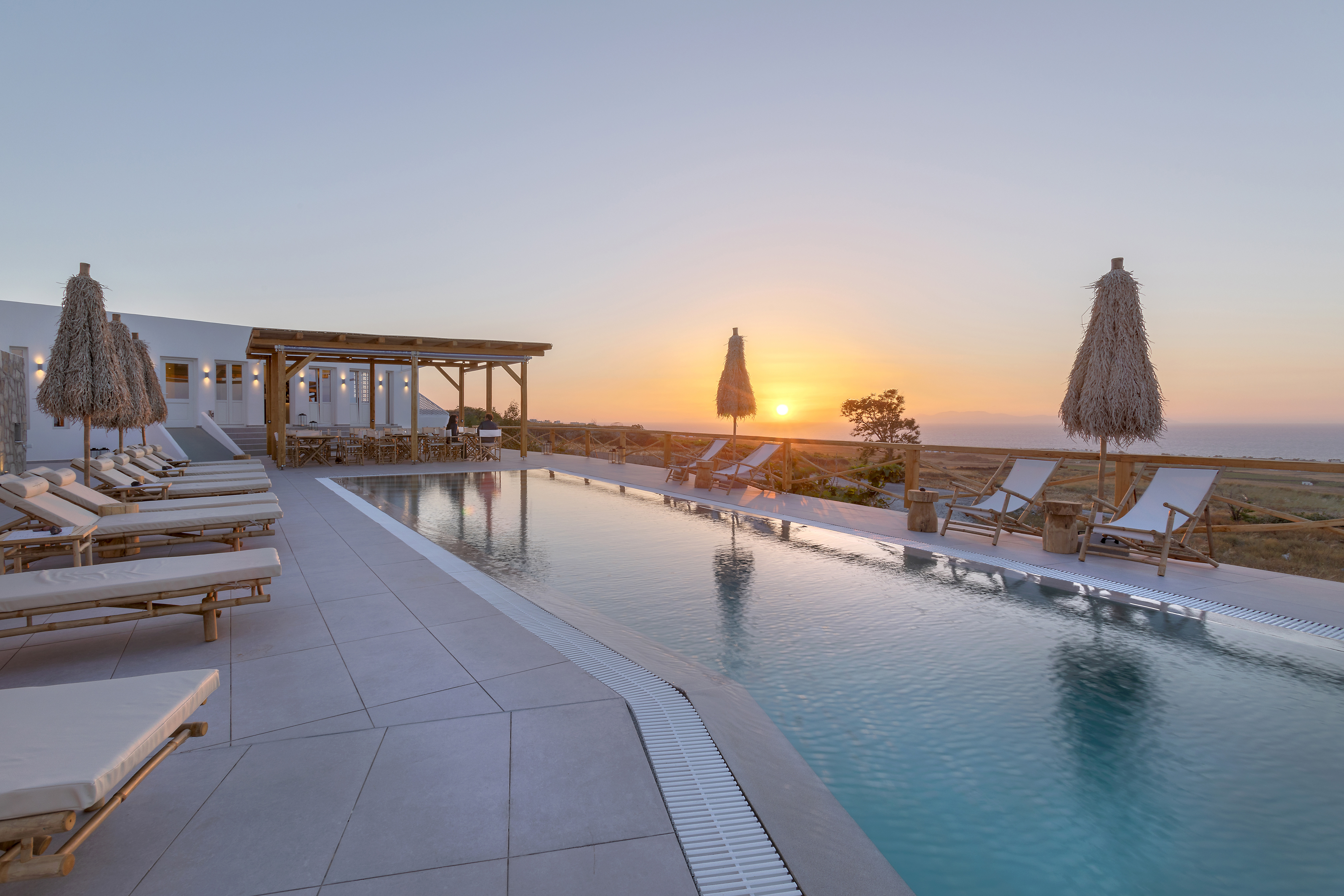 Suite with Plunge Pool (30-36m2) sleeps up to 3 persons. The room exudes a refreshing sense of relaxation and serenity, while it features a queen size bed. The exterior patio boasts an outdoor swimming pool, dining area, sunbeds and exceptional views of the sea. All other facilities as per Double Room Pool Front & Sea View.
