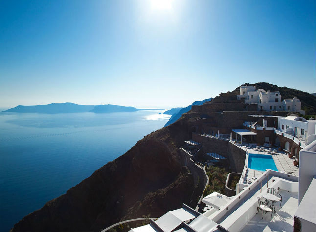 San Antonio is a distinctively impressive luxury hotel with Caldera view in the narrowest point of Santorini in Greece. A rough diamond generously polished resting on a natural volcanic plateau in the picturesque village of Imerovigli and near the Unesco Heritage Village of Oia. San Antonio boutique hotel is a luxury retreat in Santorini with an unrivalled sea view of the azure Aegean Sea and the volcanic Caldera. Nestled in Santorini's delicate neck in the popular village of Imerovigli, this inimitable boutique hotel in Santorini Greece offers sublime luxury in the most intense natural surroundings.