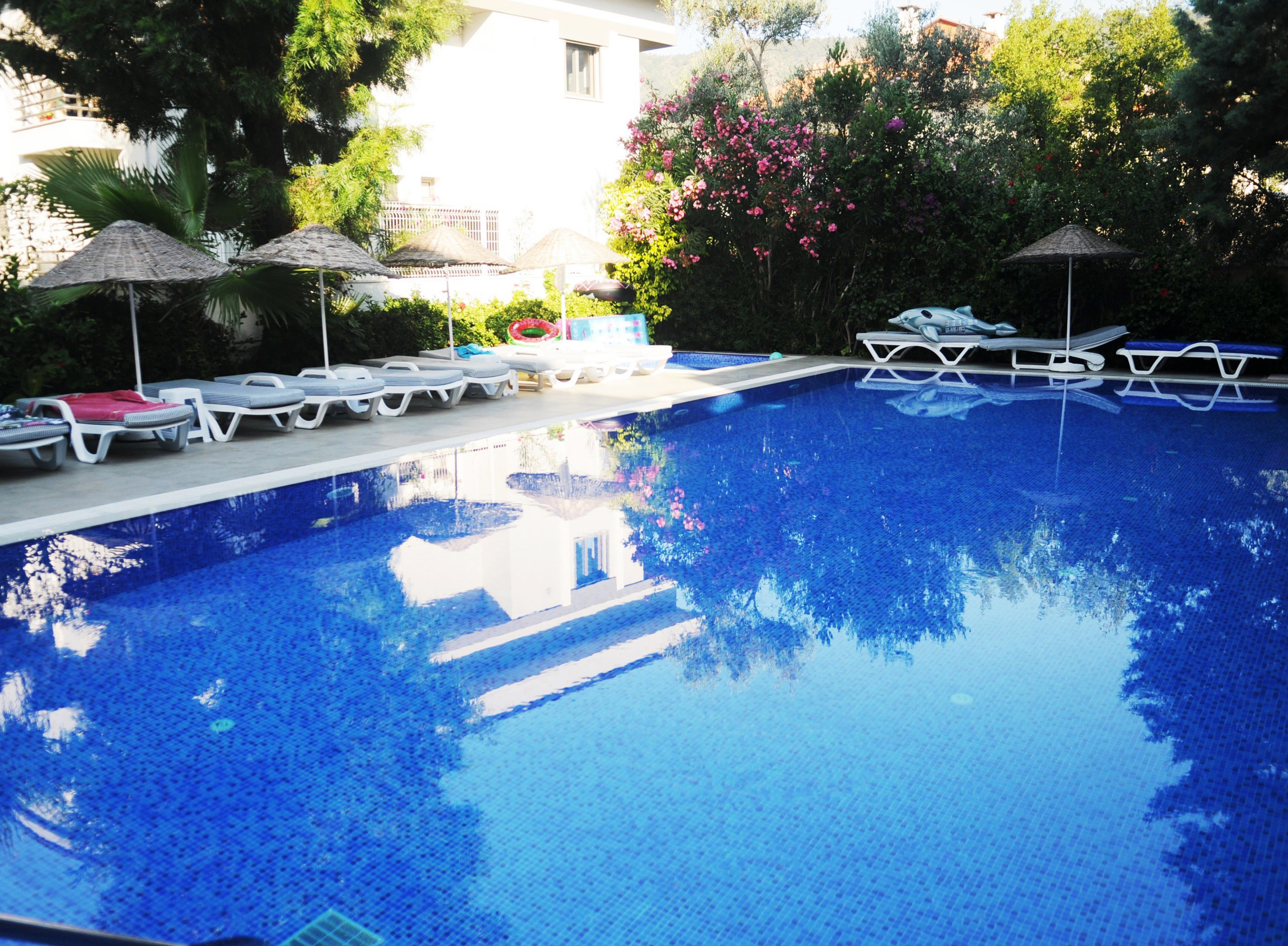 Bright, nautical-themed decor adds to the warmth of the welcome at the Navy Hotel, which has the benefit of being in a quiet spot but close the heart of Içmeler’s shopping, dining and entertainment districts. The beautiful, white sand beach is within easy walking distance and the setting makes it a charming place to stroll in the sun or sunset or enjoy watersports. The hotel has its own gorgeous gardens and, as well as delicious buffet dining, offers special Sunday lunch and a barbecue once a week.